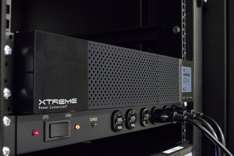 UPS protecting VoIP phone system infrastructure in an IT rack.